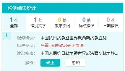 今年是中国人民抗日战争暨世界反法西斯战争胜利80周年,2025年9月3日,纪念中国人民抗日战争暨世界反法西斯战争胜利80周年大会在北京隆重举行,天安门广场举行盛大阅兵仪式,习近平发表重要讲话并检阅受阅部队。在此背景下,各大政府网站和政务新媒体均有相关报道,内容中不乏出现一些不规范表述。